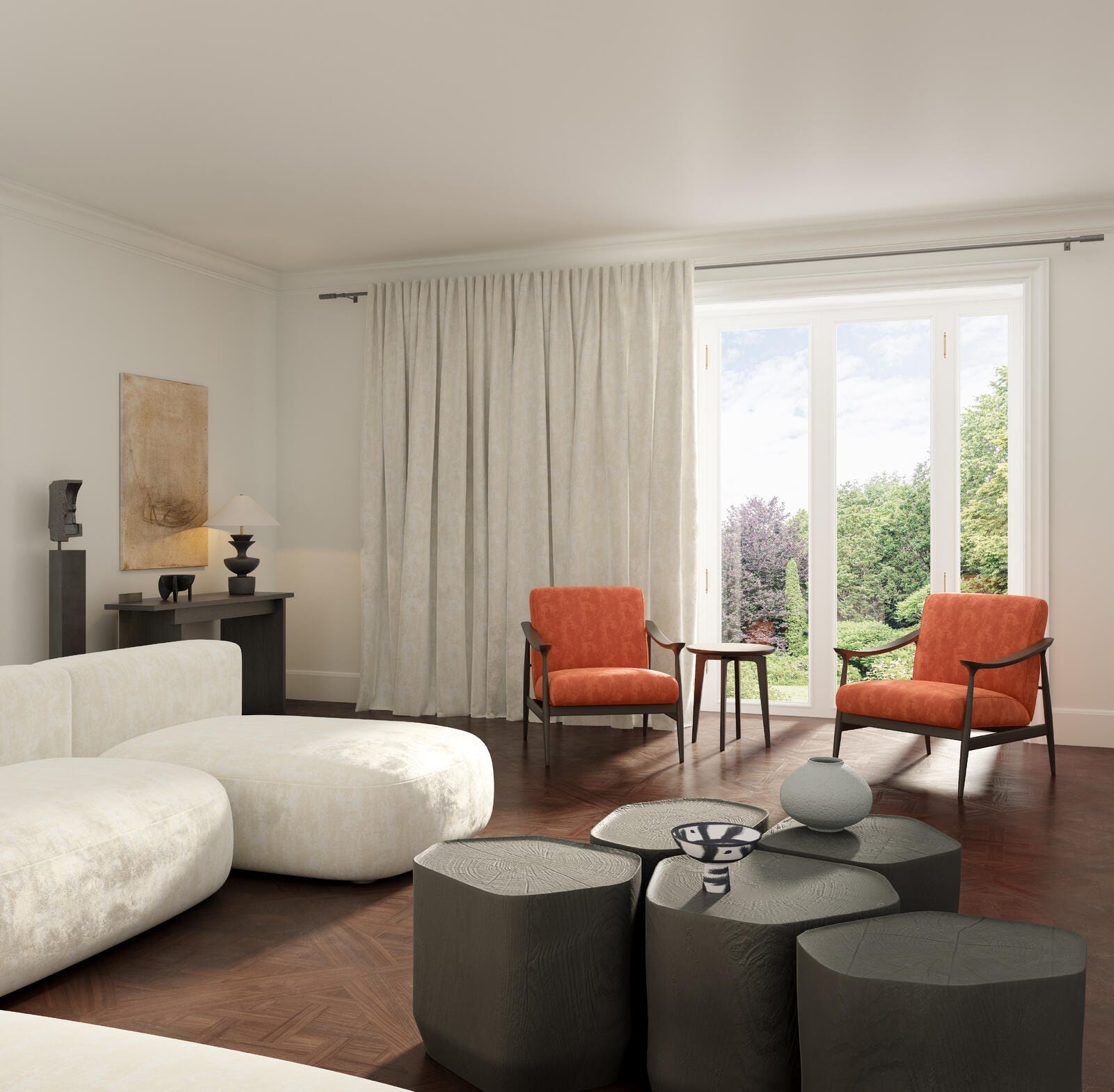 Innovation is a richly textured chenille jacquard that blends style, performance, and sustainability. With tonal, patinaed patterns and a soft, sumptuous handle, it moves beautifully across curtains and upholstery alike. Made with FibreGuard stain-resistant technology, it offers durability without compromise. Innovation is crafted from recycled polyester, making it as conscious as it is versatile.