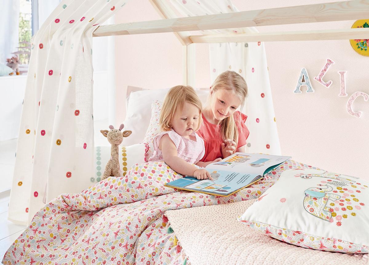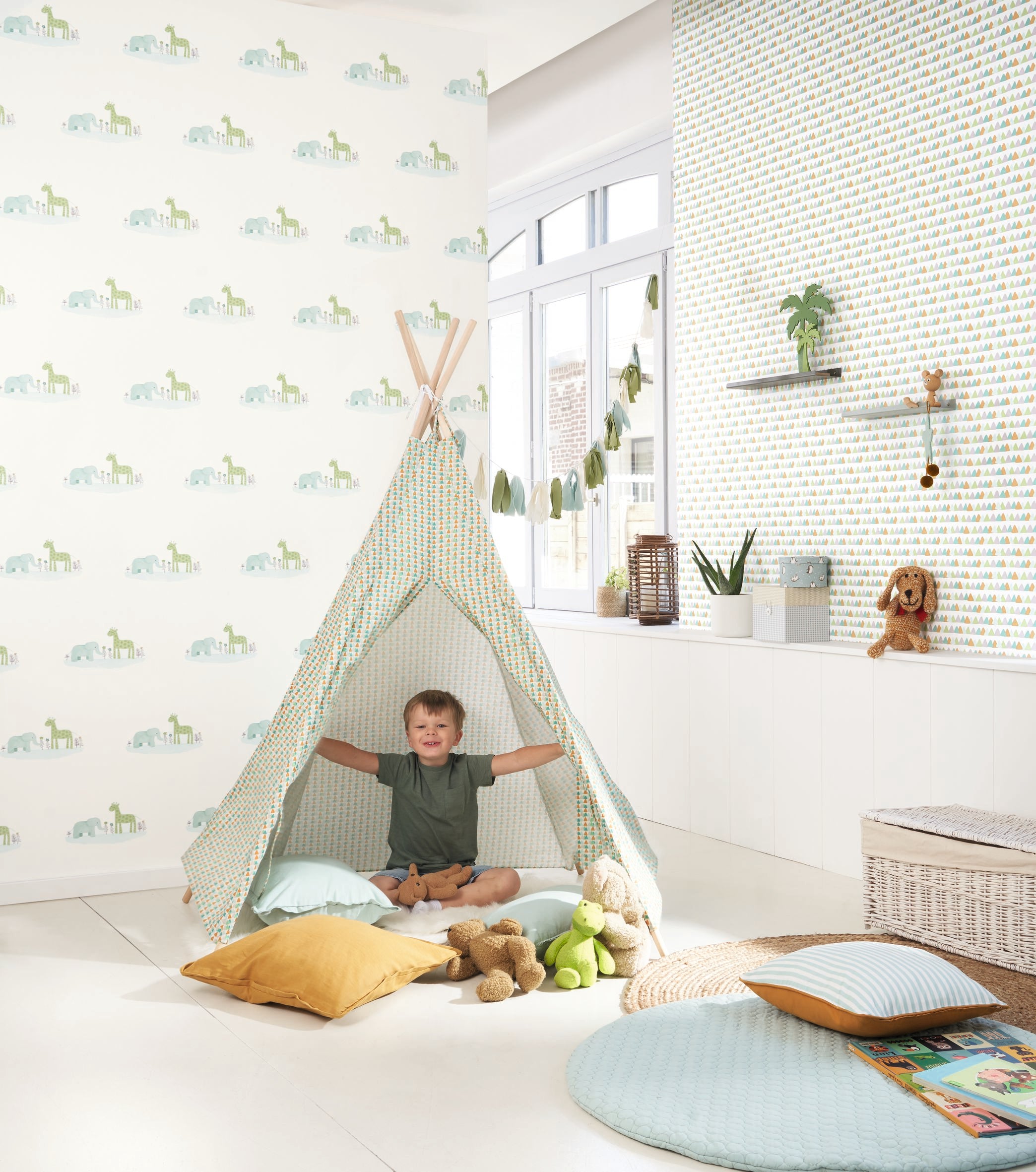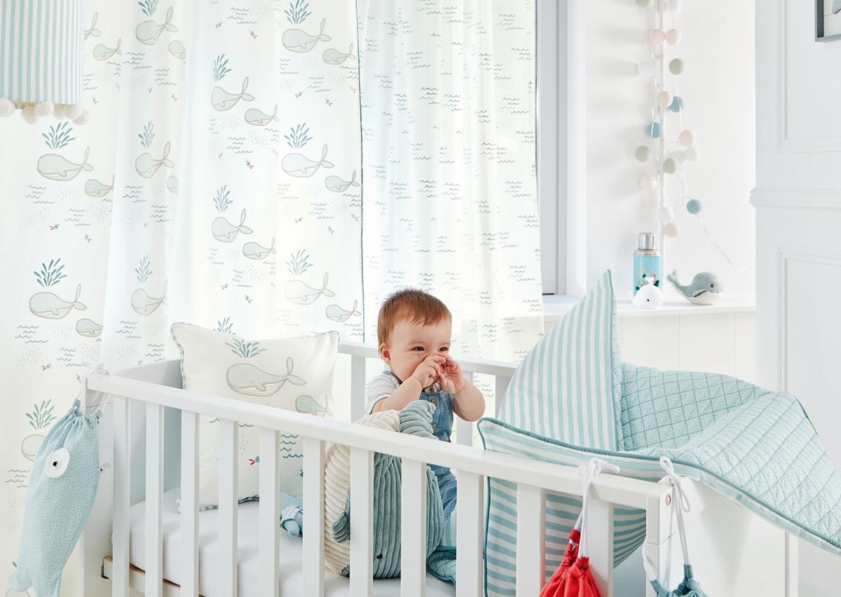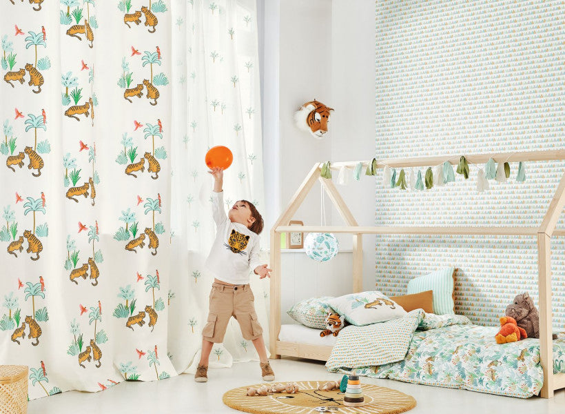 This collection, designed for girls and boys up to the age of 6, creates an enchanted decor for their room, filling their days and nights with small pleasures to catch hold of, invent, dream. Wonderful adventures to live each day, surrounded by floral giraffes, stripy whales, friendly tigers, fluffy clouds…a treasure-hunt !