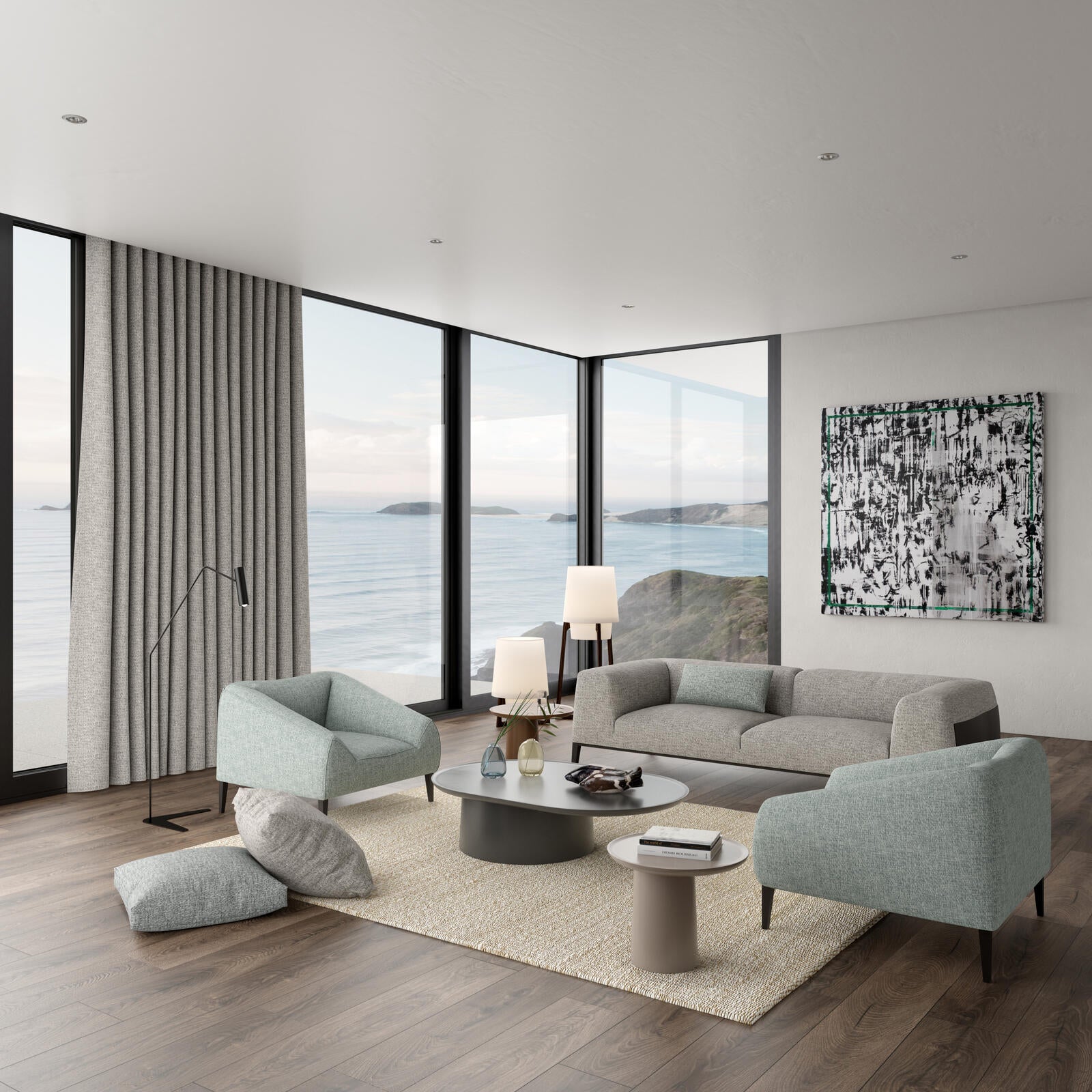 Sophistication and practicality combine with the Universe collection. Crafted from a sustainable blend of recycled polyester, organic cotton and linen this tactile upholstery collection features a soft touch and advanced easy clean technology. Offering accessible luxury, Universe features a chunky irregular weave designed to complement an array of furniture styles from modular to mid-century. With permanent stain resistance, the fabrics have been piece-dyed in a versatile palette of timeless neutrals and mineral-inspired hues of blue, green and pigmented ochre.