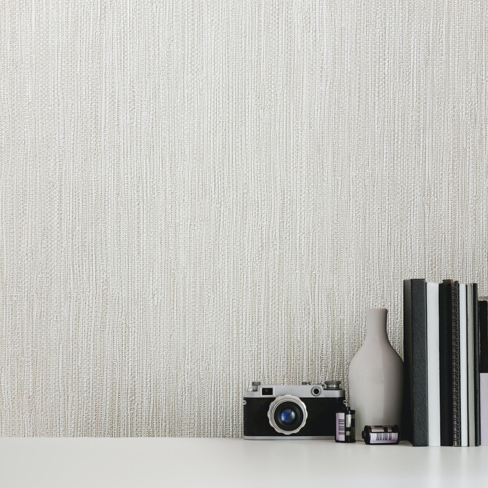 Linen effect, very thin stripes, irregular weft and subtle nuances give the vinyl wallpaper its textile appearance. The collection of plain textures is suitable for those who want to create a simplicity and modern atmosphere.